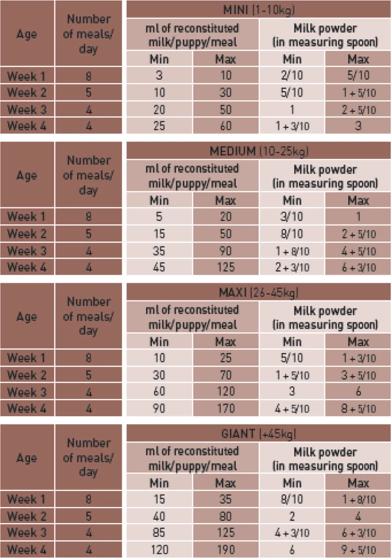 Suitable for first age puppies from birth to weaning, ROYAL CANIN® Babydog Milk is formulated to be as close as possible to maternal milk, with high energy and protein levels to support healthy growth. This formula contains a lactose content very close to that of maternal milk and is composed of carefully selected, ultra-digestible proteins and prebiotics to support your puppy’s digestive health. ROYAL CANIN® Babydog Milk is enriched with DHA (an essential Omega-3 fatty acid) that is naturally present in maternal milk and helps to support your puppy’s cognitive development. It is recommended that you refer to the on-pack feeding guide to make sure your puppy gets the appropriate volume for optimal support. Feeding kit (bottles, teats and scoop) included.