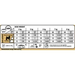 Composition: Dehydrated poultry protein, rice, maize, wheat, vegetable protein isolate*, animal fats, maize gluten, hydrolysed animal proteins, minerals, soya oil, chicory pulp, fish oil, yeasts and parts thereof, fructo-oligo-saccharides, psyllium husks and seeds, borage oil (0.1%), hydrolysed crustaceans (source of glucosamine), marigold extract (source of lutein), hydrolysed cartilage (source of chondroitin).*L.I.P.: protein selected for its very high digestibility. Crude ash: 6.9%. Crude fibre: 1.6%. Crude oil fats: 15%. Moisture: 0%. Protein: 29%.