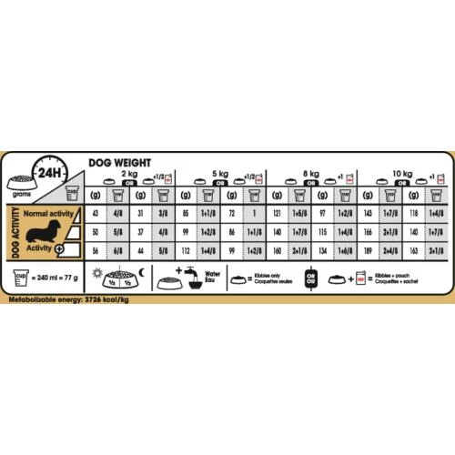 The Dachshund is a friendly, intelligent and loyal breed that is widely renowned as the ideal family dog. Because each breed has different needs, it’s important to select a food product that contains nutrients to support optimal health. Suitable for Dachshunds over 10 months old, ROYAL CANIN Dachshund Adult is specially formulated with all the nutritional needs of your adult dog in mind to help maintain its good health and wellbeing. ROYAL CANIN Dachshund Adult contributes to supporting the Dachshund’s bones and joints, thanks to an adapted calcium and phosphorus content. This exclusive formula also helps your dog maintain good muscle tone and an ideal weight. ROYAL CANIN Dachshund Adult also helps to reduce the smell and volume of your dog’s faecal matter. The unique kibble in ROYAL CANIN Dachshund Adult is tailor-made to help reduce tartar formation, thanks to the inclusion of calcium chelators. To cater to each dog’s individual preferences, ROYAL CANIN Dachshund Adult is also available as wet food in a soft and tasty loaf. If you’re considering mixed feeding, simply follow our feeding guidelines to ensure your dog gets an accurate amount of both wet and dry food for optimal benefit.
