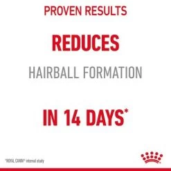 - Proven results; according to an internal study by Royal Canin, hairball formation was reduced in the participating cats after only 14 days of feeding with the Royal Canin Hairball Care wet food