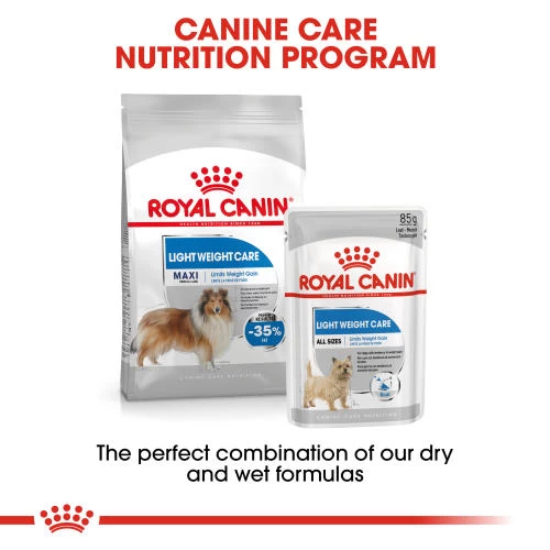 ROYAL CANIN Maxi Light Weight Care Adult Dry Dog Food is for large dogs from 26 to 44kg with tendency to gain weight.