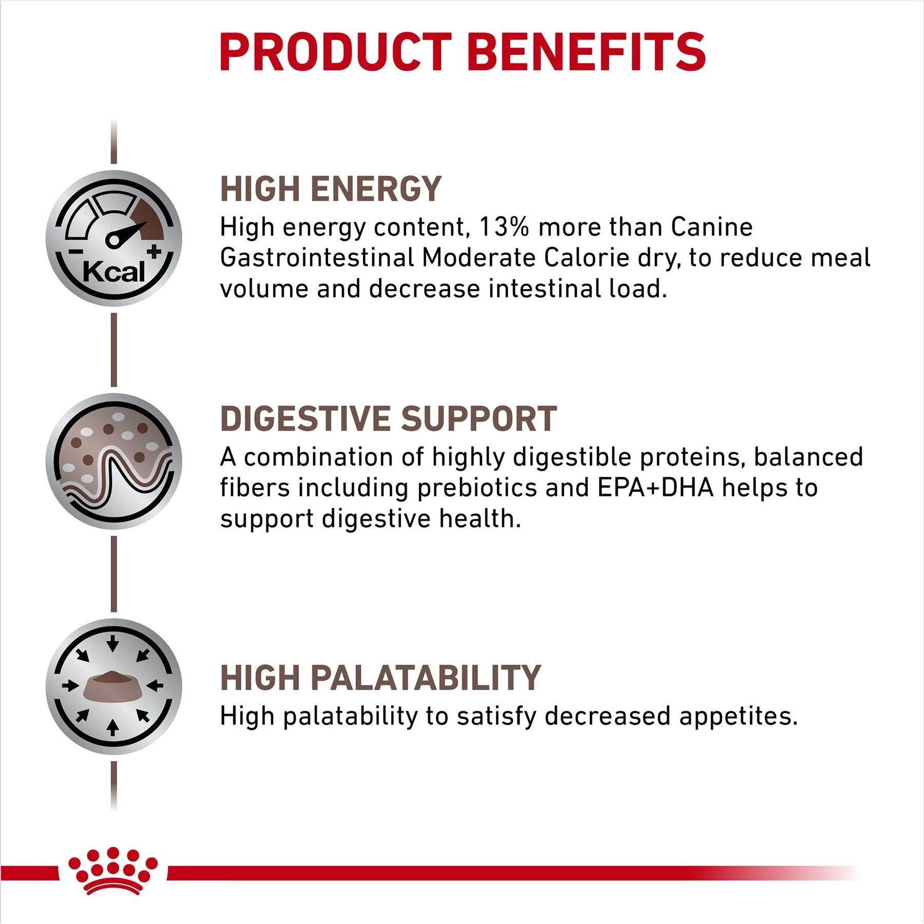 - Contains a high energy content to support underweight dogs or dogs with a reduced appetite.