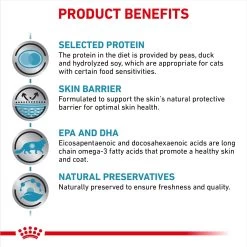 - A veterinary-exclusive diet made with pea, duck, and hydrolyzed soy for cats and kittens with food sensitivities.