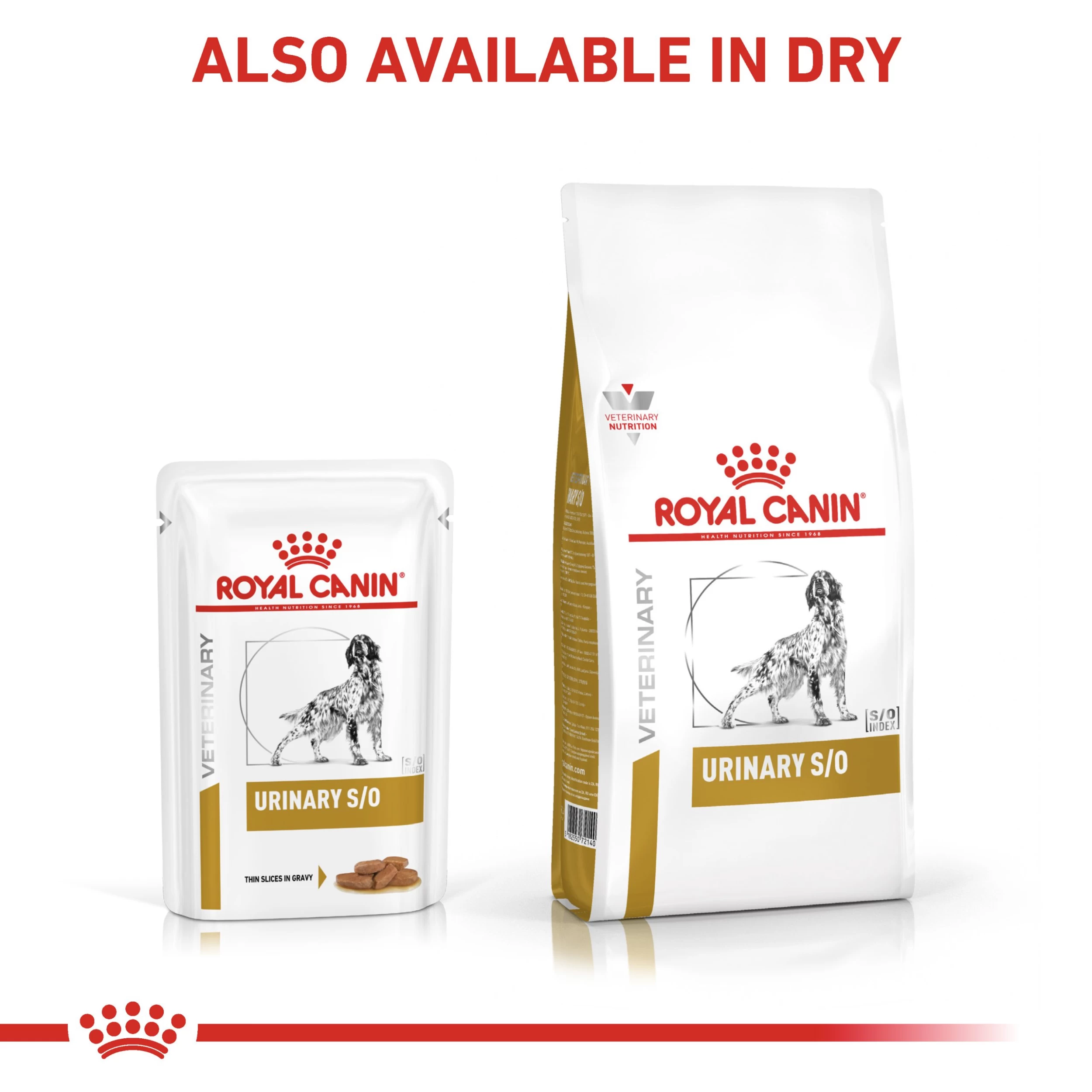 For dogs with urinary health concerns, a precisely tailored and nutritionally balanced diet can help to support a healthy bladder and urinary tract. Specially formulated with the needs of adult dogs with urinary issues in mind, ROYAL CANIN® Canine Urinary S/O in Gravy is available in boxes of 12x 100g pouches. In your dog’s urine, there is a normal component known as struvite. If your dog’s urine becomes too concentrated, struvite can form as harmful stones or crystals. ROYAL CANIN® Canine Urinary S/O in Gravy supports your dog by helping to dissolve all types of struvite stones that may have already formed. ROYAL CANIN® Canine Urinary S/O in Gravy contains an exclusive formula that helps to dilute your dog’s urine, ultimately reducing the likelihood of struvite stones or calcium oxalate stones forming initially. What’s more, ROYAL CANIN® Canine Urinary S/O in Gravy is developed with Relative Super Saturation (RSS) methodology in mind. RSS methodology helps to reduce the ion concentration in your dog’s urine. A urinary environment with a reduced concentration of ion makes crystal formation less likely. If your dog is overweight or prone to weight gain, consider offering them ROYAL CANIN® Canine Urinary S/O Moderate Calorie in Gravy that contains all of the benefits of their counterpart, just with fewer calories. As part of the ROYAL CANIN® Veterinary Health Nutrition range, it is important that this product is only given to your pet when recommended by a veterinary professional. To cater to each dog’s individual preferences, ROYAL CANIN® Canine Urinary S/O is also available as a soft and tasty loaf, or as dry food with crunchy and tasty kibble. If you’re considering mixed feeding, simply follow our feeding guidelines to ensure your dog gets an accurate amount of both wet and dry food for optimal benefit. At ROYAL CANIN® we’re committed to providing nutritional solutions to your pet’s needs. All of our products undergo an extensive quality control process in order to guarantee the optimum quality of food, as well as catering to your dog’s specific dietary requirements and lifestyle. This means that when your dog eats ROYAL CANIN® Canine Urinary S/O in Gravy, it’s getting a complete and balanced diet.