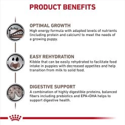 - Kibble is easily rehydratable to encourage food intake and help puppies transition from milk to solid food.