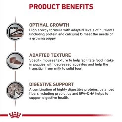 - Veterinary-exclusive wet dog food with a tempting mousse texture for growing puppies with either long-term or short-term digestive sensitivities.