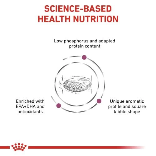 - Formulated with low phosphorus and moderate protein of high quality to support renal function