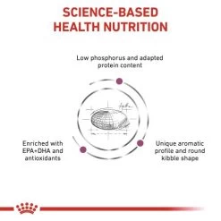 - Formulated with low phosphorus and moderate protein of high quality to support renal function
