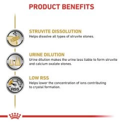 The low RSS formulation in Veterinary Urinary S/O helps to dilute the urine and reduces the concentration of ions, helping to remove leading factors in the formation of kidney and bladder stones.